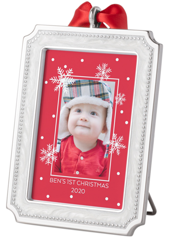 Baby'S First Christmas Photo Frame. Made of resin and metal Assortment of 2 ornaments Hangs from either a blue or pink ribbon Can be written on for personalization Picture space is 175-inches by 175-inches Item Size. 1461 W x 1302 H x 064 D. After all your baby will never have a 1st Christmas again.